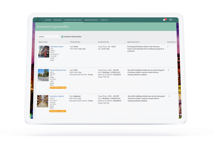 Share information about potential new investments, including documents and photos in a deal room environment
